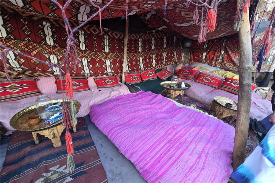 Оказалось, нам приготовили сюрприз — встречу с бедуинами. Это такой кочевой народ, который живет по своим особым обычаям. Местные мальчишки вывели к нам верблюдов и предложили прокатиться. Я одним из первых вскочил на горбатого, однако удержаться в седле оказалось непросто. Он вроде и медленно идет, но тебя от чего-то трясет сильней, чем на лошади. Приходилось все время искать равновесие, ловить ритм.