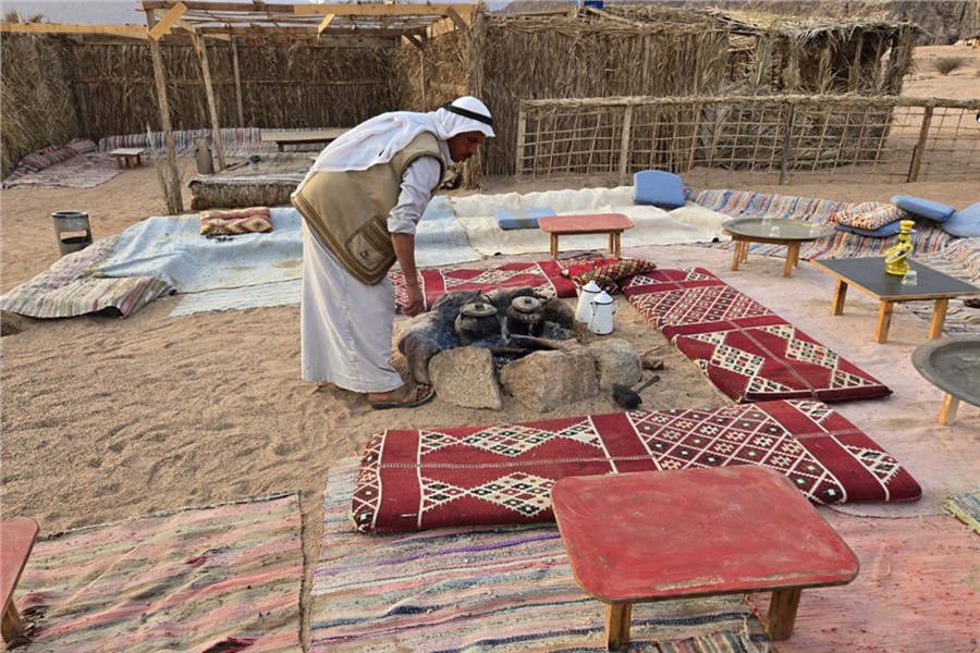 После поездки на верблюдах бедуины напоили нас чаем с хабаком. Хабак — это такая трава немного мятная и с характерным прохладным запахом, она растет только в Египте, а если быть точнее, на Синайском полуострове. Поговаривают что чай с этой травой обладает целебными свойствами: избавляет от кашля и боли в горле, помогает при проблемах с желудком, успокаивает и борется с бессонницей. Не знаю, правда ли это, но на вкус чай действительно отменный!
