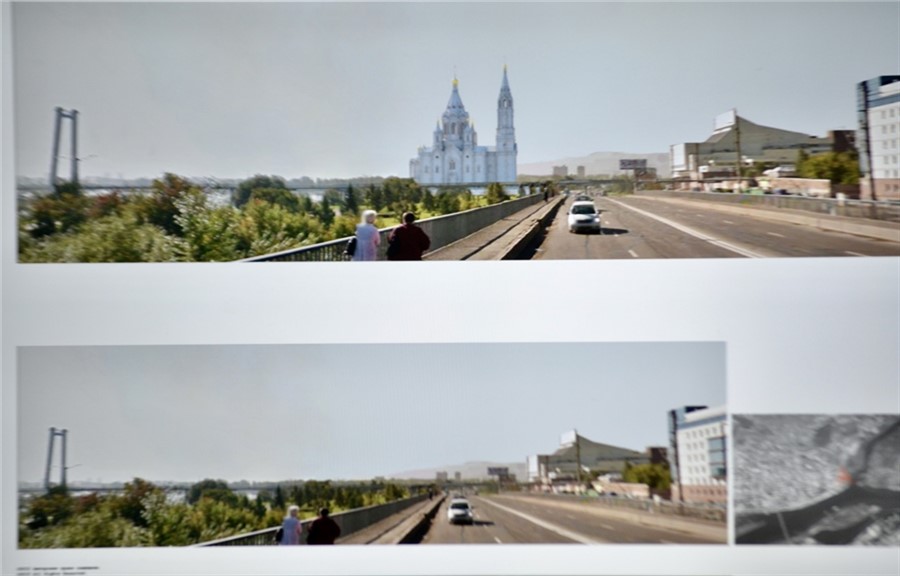 Таким образом, земельный участок под храм будет вплотную прилегать к улице Карла Маркса и займет почти все место от вантового моста до музейного центра «Площади Мира».