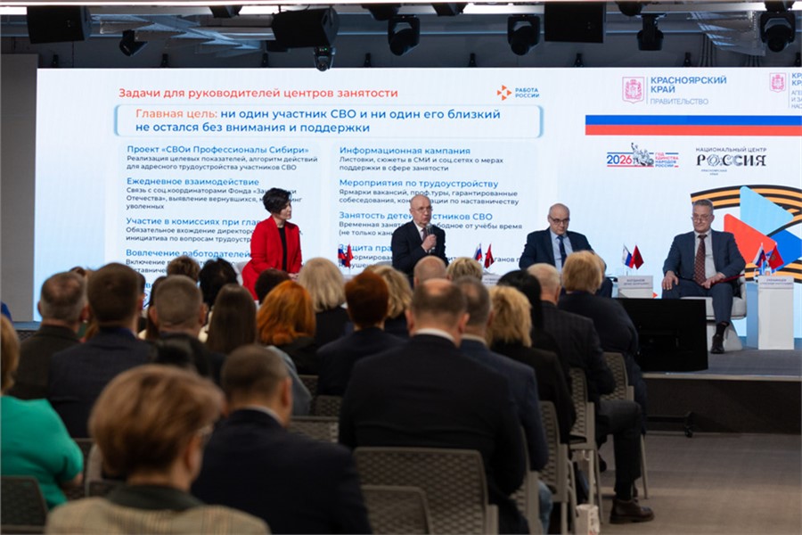 В Красноярске на площадке Национального центра «Россия» впервые состоялся семинар-совещание по трудоустройству участников специальной военной операции. Опытом и лучшими практиками делились представители службы занятости, Фонда «Защитники Отечества», органов социальной защиты, муниципалитетов и работодатели. В дискуссиях участвовали и сами ветераны спецоперации.