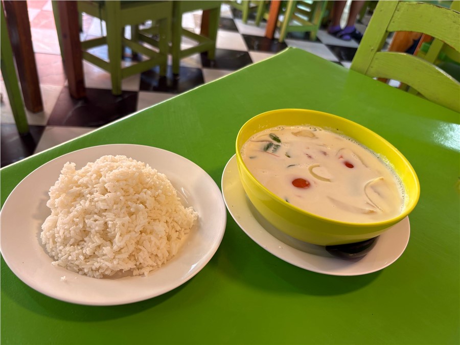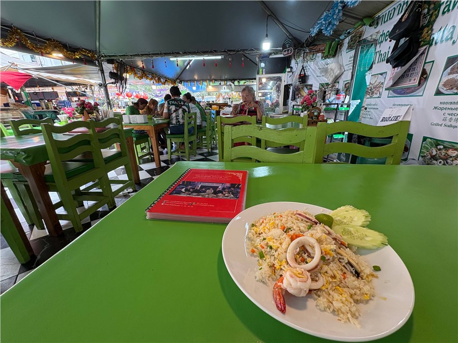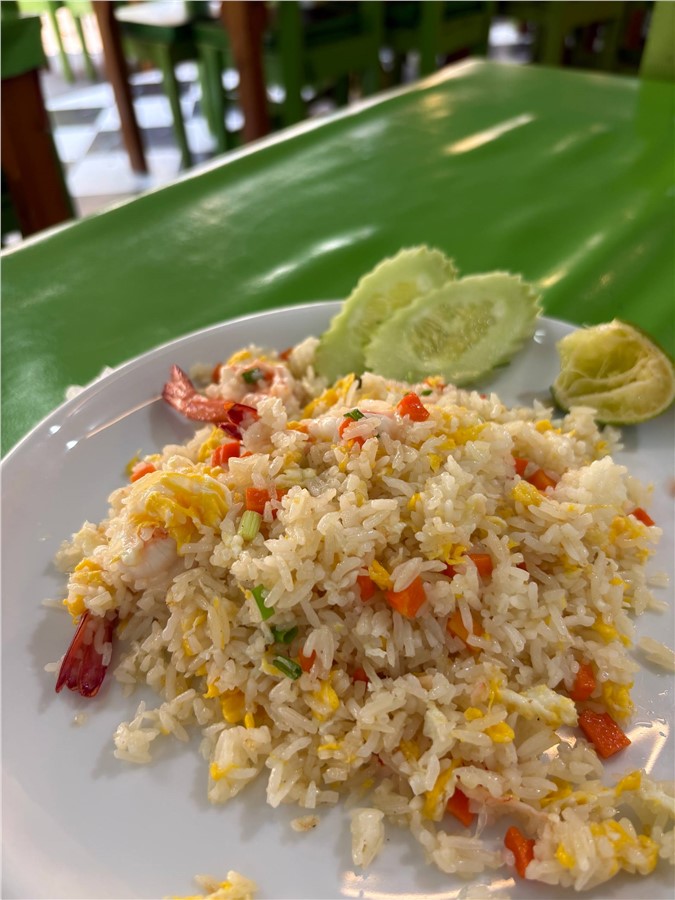 Средний чек за обед или ужин выходил около 500 рублей. Том Кха — 100 бат, рис — 20 бат, жареный рис с креветками — 100 бат, фруктовый смузи — 20 бат, нарезка фруктов — 40 бат. А любители экзотики могут попробовать, например, микс из жареных кузнечиков, личинок и крабиков за 50 бат. Вкус специфический, но опыт того стоит.