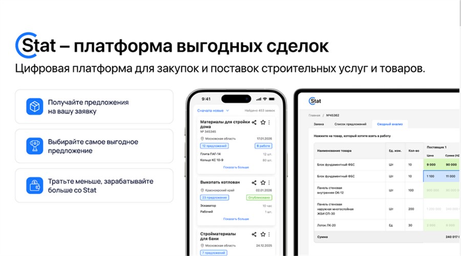 Пока вы ищете варианты, рынок уже предлагает десятки цен. Stat меняет правила, делая их более прозрачными и понятными. Без холодных звонков. Без поиска клиентов. Вы размещаете заявку, а платформа — сама ищет для вас поставщиков.