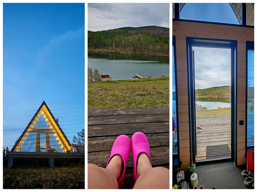 Не очень приятная гравийка, а после — проезжабельная только посуху грунтовка, ведет от Цветногорска к Туманной. Станция на жд ветке Ачинск-Абакан названа так не случайно. В живописную узкую долину с поросших березнячком сопок ранним утром стекают белесые языки тумана, поглощая хогвартсовского вида санаторий, деревянные дома поселка и юрты кемпинга Хара-Суг. Стилизованный под хакасский аал, он является единственным местом, где можно переночевать в мае в этом дивном уголке Хакасии. Вас ждет чистый, прозрачный воздух и здоровый сон без шумных соседей с мангалами, — высокий сезон в Хакасии начнется только через месяц.