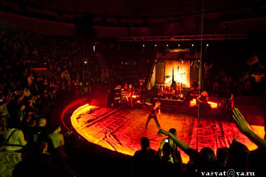 А самое ценное — «Алиса» ни на йоту не утратила своей былой энергетики. Зал цирка (на мой взгляд — лучшее в Красноярске место для подобных концертов, если не считать «Че Гевары») завелся в секунду. Как пошутил мой приятель на предложение сесть на ступеньки лестницы (свободных мест почти не было): «Что, хотела отсидеться? Не получится». Не получилось — уже на первой же песне обнаружила, что вместе со всеми вскочила с места и радостно скачу и подпеваю — и откуда-то наизусть еще помню строки старых кинчевских песен. Разрядка произошла неописуемая.