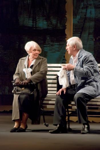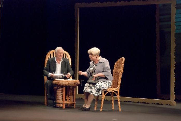 В норильской постановке режиссером выступил сам Валерий Оника, и на пару с партнершей у него получился добротный актерский спектакль. Без каких-то постановочных изысков — просто хороший дуэт. Спектакль поставлен как ретро-комедия — действие в нем происходит в то же время, как и в самой пьесе. Артистам и самим памятна та эпоха... А художник Маргарита Мисюкова усилила ностальгические нотки в постановке с помощью видеопроекции коричнево-белых снимков старой Риги. И нескольких больших старинных рамок, установленных на сцене. Остальной антураж простейший — кресло, скамейка, пара столиков... Но за счет видео и фоторамок ощущение какого-то естественного соприкосновения с прошлым. И это прошлое не кажется далеким...