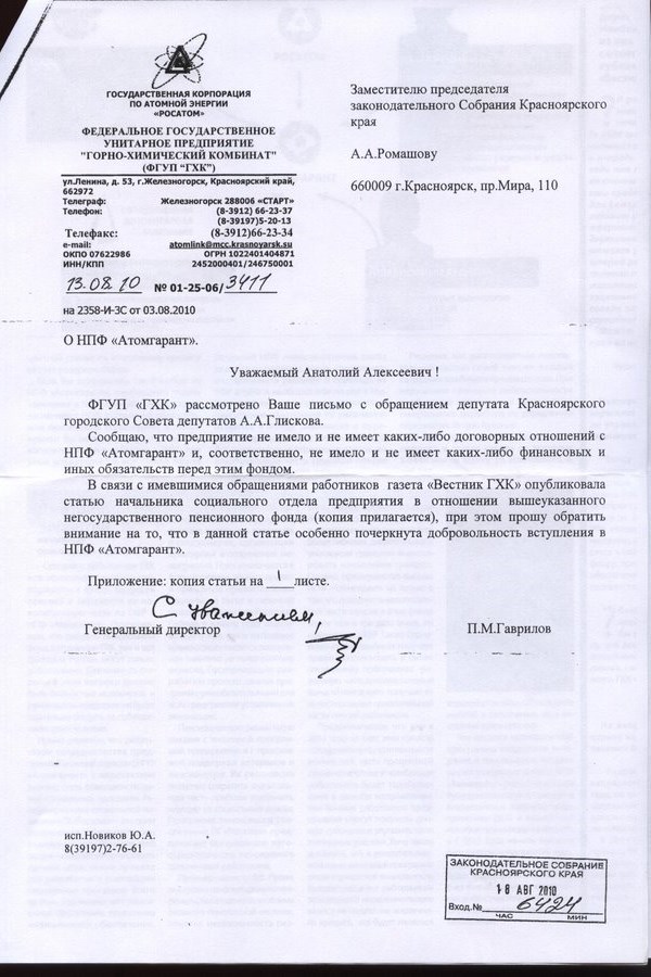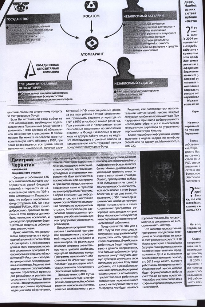 3. ГХК подтвердил факт размещения в корпоративной газете рекламы «Атомгаранта», собираюсь поинтересоваться, на каких условиях это было сделано (часть 1, часть 2, часть 3).