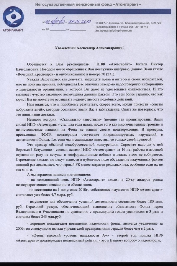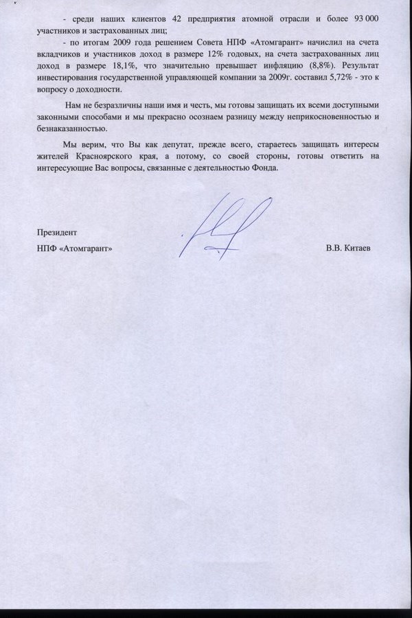 4. Самый интересный ответ прислал сам «Атомгарант», он выражает готовность ответить на все интересующие вопросы, готовлю список вопросов, предложения принимаются (часть 1, часть 2 ).