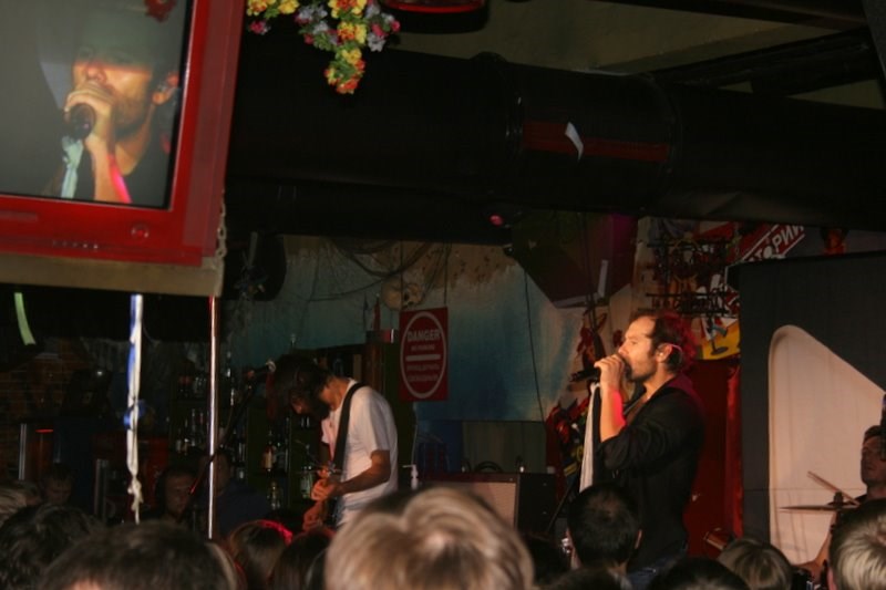 Солист, выйдя на сцену, сразу отметил, что не часто ему приходится выступать на такой маленькой площадке, пожалел, что ничего не видно в радиусе 10 метров. В итоге во время концерта он, как Тарзан, лихо запрыгивал по пилону на барную стойку. Кстати, ставлю ему «5+» не только за пение, но и по физ-ре. Так быстро и высоко подпрыгивал! Причем ему это не мешало великолепно петь, а пел он на родном украинском, мелодично и сильно. Ему подпевал весь зал, а одна девочка, я ее прозвала дочкой Децела, так трясла дредами, что народ от неё разошелся в радиусе метра!