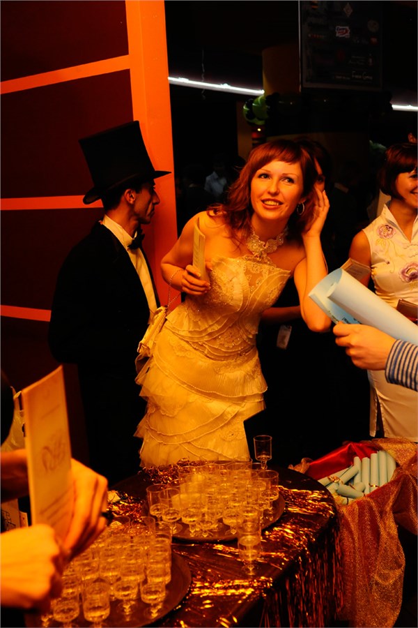 В профессионализме Анастасии я не сомневаюсь. Только жаль, что оценить её работу не смогла, опять же по причине «не пустили». Страдала и техническая сторона, так в третьем зале на 10 минут вырубился звук. А в фойе рассмотреть, что происходит на импровизированной сцене, удалось лишь тем, кто стоял в первых рядах. Но и там ничего особенного не происходило — актеры в костюмах просто слонялись из угла в угол. Думала, может сценку какую покажут, а неееет.