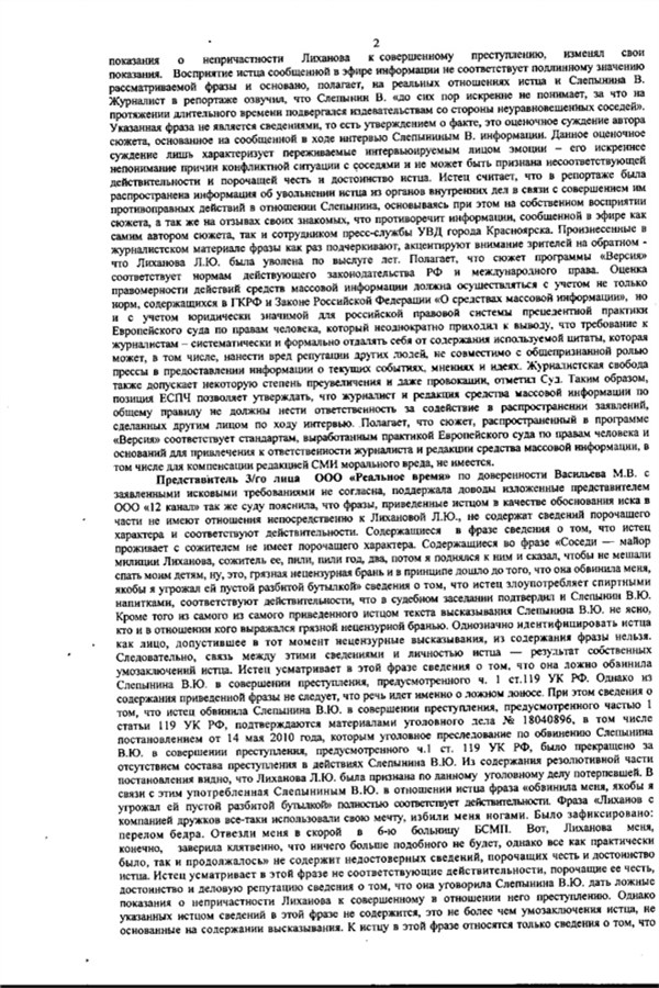В иске о двух миллионах суд тоже отказал. Замечу, что основной довод истицы в суде заключался в должности майора и 20-летнем стаже работы —именно поэтому она не могла пить и материться. И этих людей будут скоро называть полицейскими..