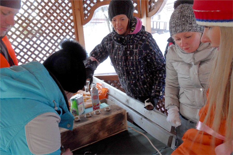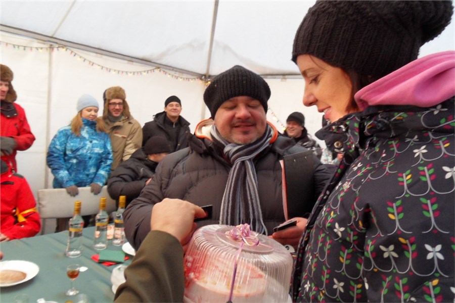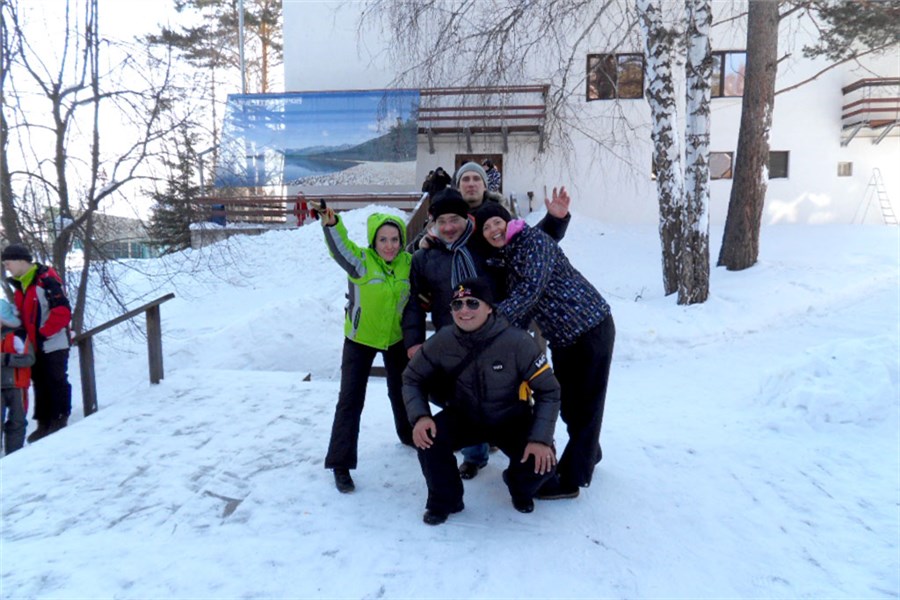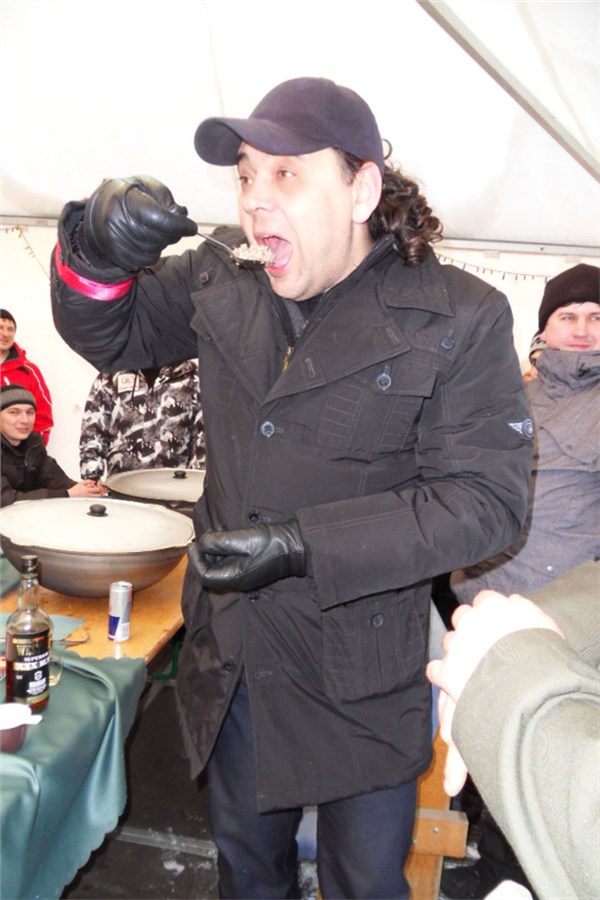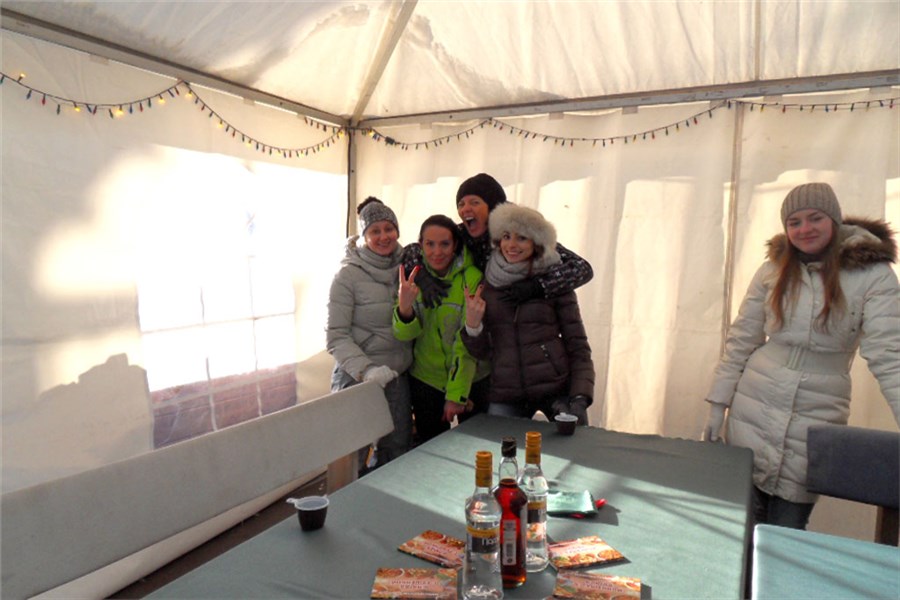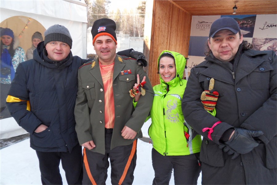 Вокруг одни знакомые лица: медийные персоны, бизнесмены, рестораторы. Кто с детьми, кто со своими вторыми половинками. Началась игра. Разбившись на команды девочек и мальчиков, мы понеслись выполнять задания. Женская команда получилась одна, зато мужских - четыре. Стрельба из рогатки по банкам оказалась самым сложным этапом. Попал в цель только один участник. Чуть лучше были результаты по метанию снежков в ведра - зимний баскетбол какой-то. А вот в верховой езде преимущество явно было у девчонок. Изящная «детальная» Елена Попенко смотрелась на коне как персонаж из художественного фильма. Успех нас ждал и на этапе с хасками. В роли каюра выступала владелица турфирмы Елена Непомнящая. Такое ощущение, что она всю жизнь только на собаках и ездила. Мужчин хаски тащили не так быстро - пришлось даже заезд отложить. Собаки поленились бежать и уснули.