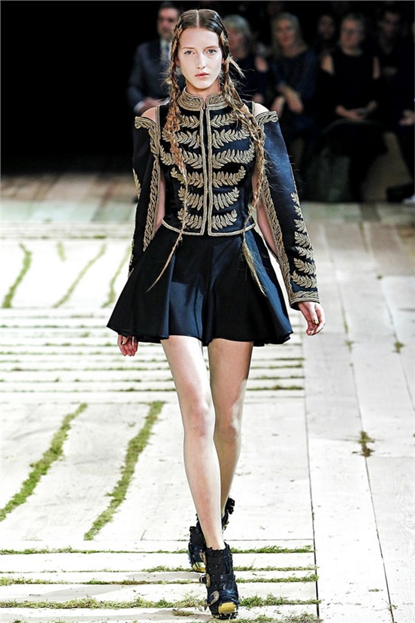 Alexander McQueen открыл свою коллекцию с платья, за основу кроя которого был взят выездковый рединго.