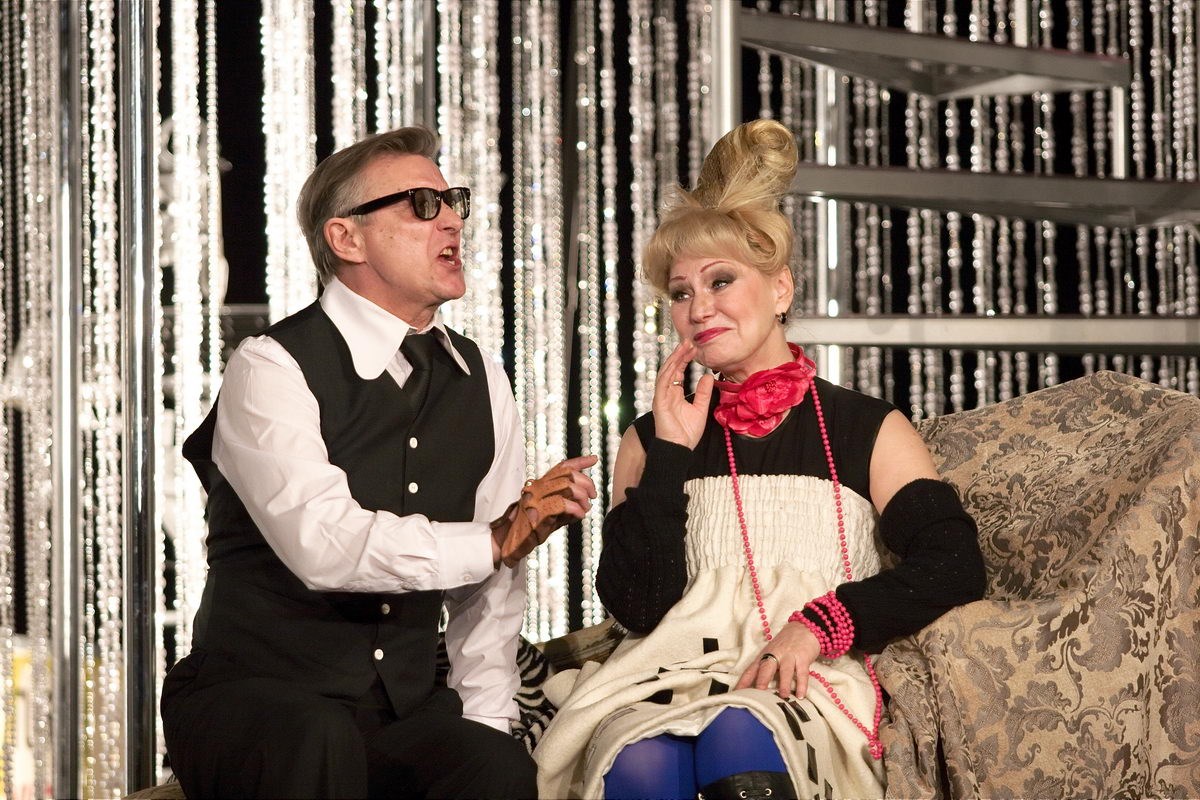 Спектакль вкатывается в зал медленно, но уверенно — как дорогой раритетный лимузин. За рулем у него стильная парочка в исполнении Сергея Даниленко и Ольги Белобровой — скульптор-авангардист и его невеста, для которых ближайшие три часа окажутся самыми беспокойными за всю их жизнь. Не бойтесь, что вас ослепит светом фар — во-первых, лимузин — это все-таки метафора, а, во-вторых, актеры появляются на сцене в полумраке. Это, пожалуй, главная неожиданность для зрителей (кроме того, что ДК на Ползунова оказался довольно-таки уютным местечком).