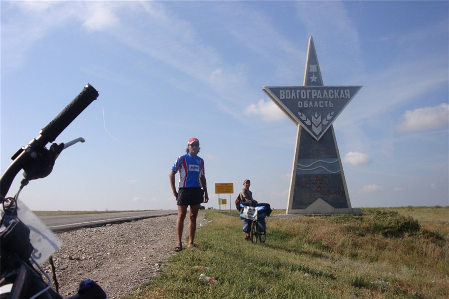 Волгоград нас встретил ненормальными холодами и дождем. В целом, дорога из Саратова до Волгограда оказалась, наверное, самой тяжелой за весь наш велотур. Узкое дорожное полотно, которое местами из плохого переходило в отвратительное. Почти все время приходилось ехать по гравию на обочине, а проливные дожди, которые мы миновали до этого, делали участок пути совсем тяжелым. Гравий, перемешанный с глиной, налипал и блокировал колеса. Один из четырех дней пришлось ехать по полю вдоль дороги, тогда мы прошли 40 км за день, но они дались равносильно 200 км в Мариинске.