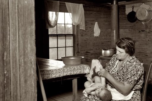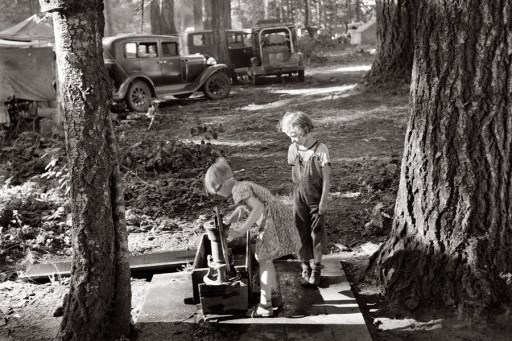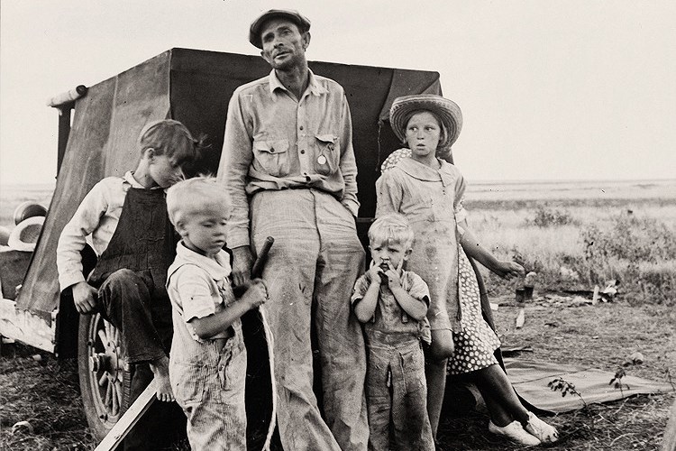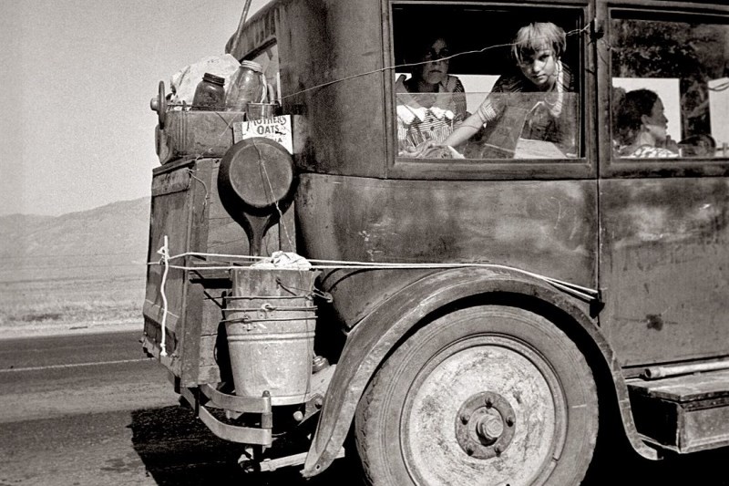 Доротея Ланг в начале 1930-х управляла небольшой портретной студией, расположенной на одной из оживленных улиц Сан-Франциско. Но экономическая и социальная неразбериха в США уберегла ее от бесполезного щелканья модных платьев и табака и столкнула с другой, документальной стороной фотографии. Ланг рассказывала, как по мере развития Великой депрессии наблюдала, как мимо ее окон следовал бесконечный поток бездомных и безработных людей, бесцельно бродящих по городу. Вскоре женщина начала работать на улицах, фотографируя бездомных. Пример этому — ее лаконичная, но уже социально-острая работа «Очередь за хлебом в Уайт-Эйнджел»: старик в старой шляпе и с алюминиевой кружкой терпеливо, в своей какой-то грусти поджав губы, ждет буханку хлеба. Уже в этом снимке — нет, не жалость, но человеческая симпатия, сопереживание и неравнодушие Ланг, которые пройдут через все ее снимки. В 2005 году «Очередь за хлебом» продадут на аукционе за более чем за восемьсот тысяч долларов.