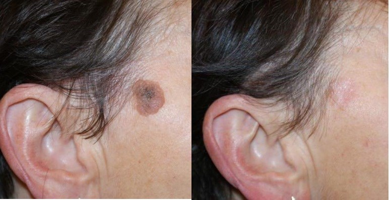 Сегодня так называемый фракционный термолиз воздействует не только на пигмент, но и на клетки эпидермиса, которые его синтезируют. Воздействие лазером разрушает избыточно окрашенные клетки и способствует нормализации синтеза меланина в коже. Преимуществом такого метода является не только безопасность и безболезненность, но и одновременный эффект омоложения участков тела, с поверхности которых исчезают пигментные пятна.
