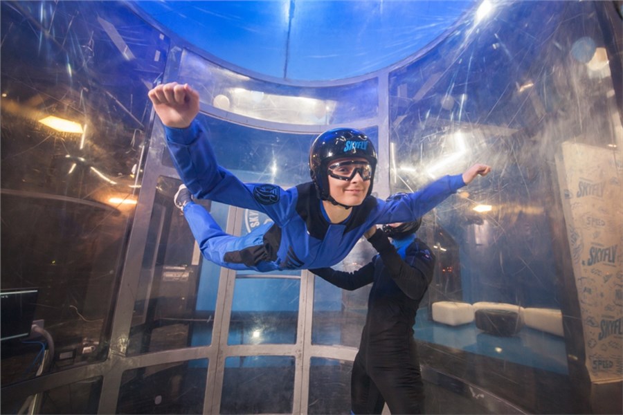 «Восторг!» и «Это должен попробовать каждый!» — одни из самых частых отзывов посетителей аэрокомплекса Skyfly. В аэродинамическом тоннеле, построенном с помощью сложного оборудования и точных расчетов, создается поток воздуха, скорость которого может достигать 250 км/ч. Если с чем-то и можно сравнить эту мощь, то только с контролируемым ураганом. Поток воздуха настолько сильный, что может удерживать человека в состоянии свободного падения так долго, насколько он сам того захочет. По ощущениям это как прыжок с парашютом — бесконечный свободный полет.