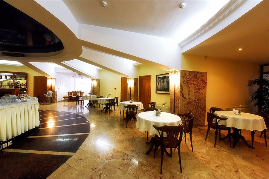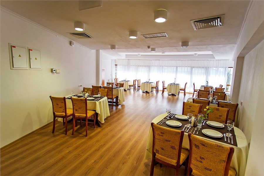 Утолить голод можно в ресторане при отеле. Здесь три раза в день накрывают шведский стол (включён в стоимость проживания), а в межсезонье можно отведать блюда из сет-меню: из специального списка можно подобрать себе целый набор — холодную закуску, салат, основное блюдо и десерт.