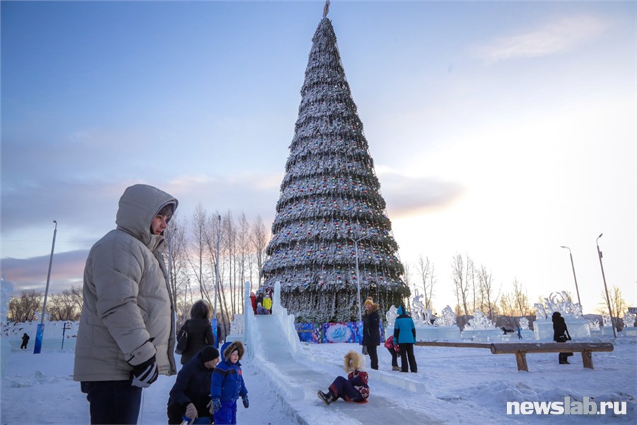 Главная городская ёлка высотой 46 метров в этом году «выросла» в восточной части острова Татышев. Огромный ледовый городок с лабиринтом, пирамидами и горками на любой возраст, кафе с горячими напитками и плюшками, зоны для отдыха с детьми и — дополнительный плюс в пользу переезда главной городской елки с Театральной площади — вместительные парковки.