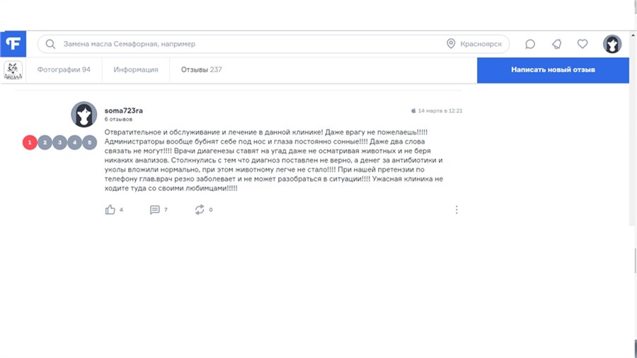 Работу ветеринарной клиники «Зоодоктор» на Ладо Кецховели, 29б красноярцы оценили на 3,3 балла, написав 155 отзывов разной степени гневности. Красноярцы возмущаются работой докторов, а официальный представитель компании на Флампе, в свою очередь, возмущается отзывами горожан.