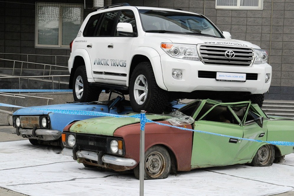 чего там потрясающего на кране сверху поставили - типа он сам заехал - не царапинки на бампере - ты размеры то соотнеси!!! ГАЗ-66 лучший внедорожник в мире - остальное попса)