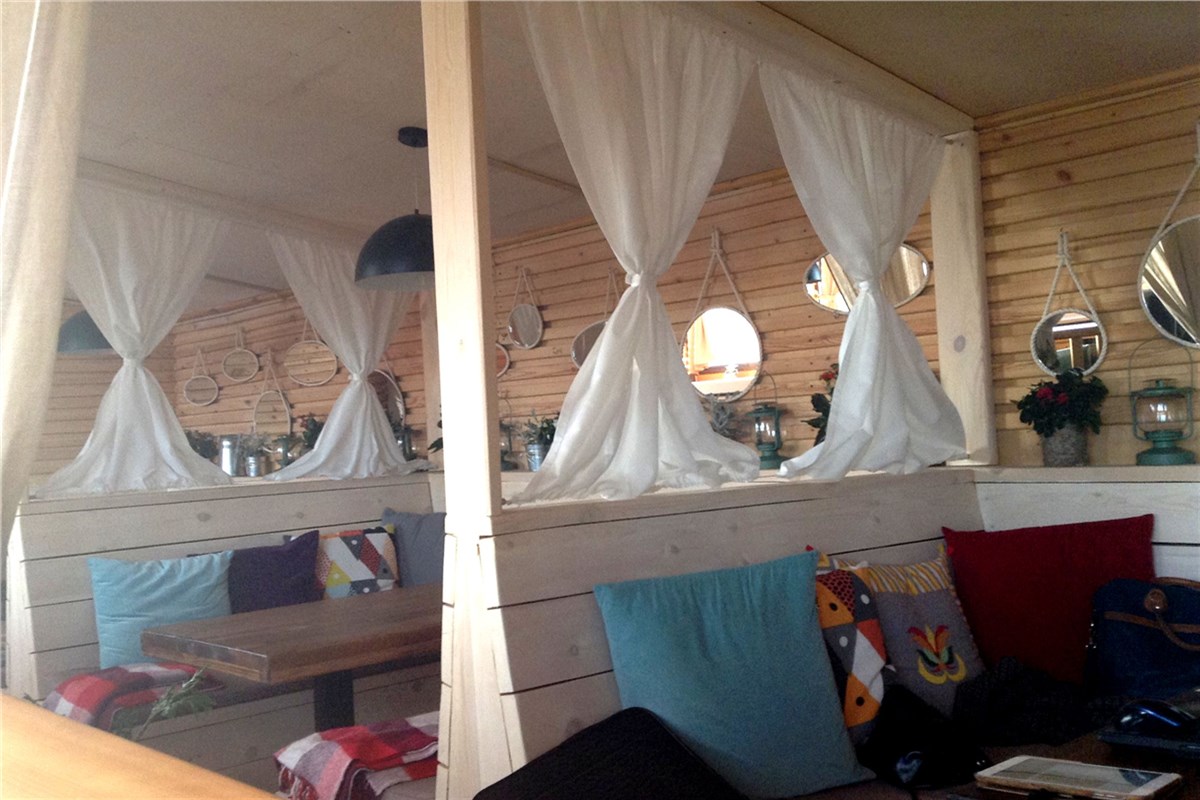 интерьер напоминает задрипанную забегаловку в сельской глуши. буе-е!