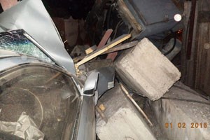Ну да, либо провод отдельно в него влетел (стекло, вроде, разбито), либо, когда вылазил, получил, либо был удар током, который внутри трансформатора посредством удара трансформатором...