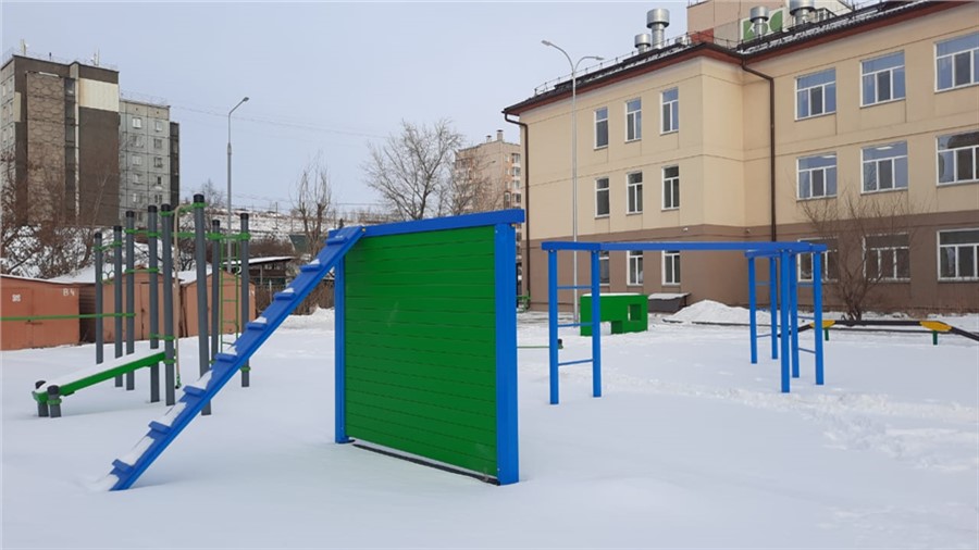 На пришкольной территории появилась универсальная спортплощадка, где можно играть в волейбол, баскетбол и футбол. Также есть беговая дорожка, гимнастическая зона с турниками и полоса препятствий. Еще школьники могут обучиться начальной стрелковой подготовке и потренироваться перед сдачей нормативов ГТО с помощью электронного тира.