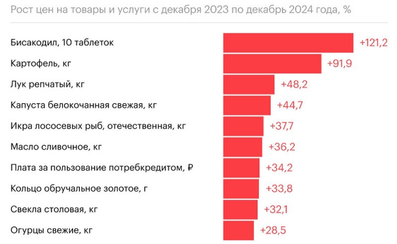 Также в топ попало сливочное масло, стоимость которого поднялась на 36 %. Цена за килограмм на конец прошлого года составляла почти 1,2 тыс. рублей, посчитали эксперты. Помимо того, фиксируется подорожание белокочанной капусты, отечественной лососевой икры, свеклы и огурцов.