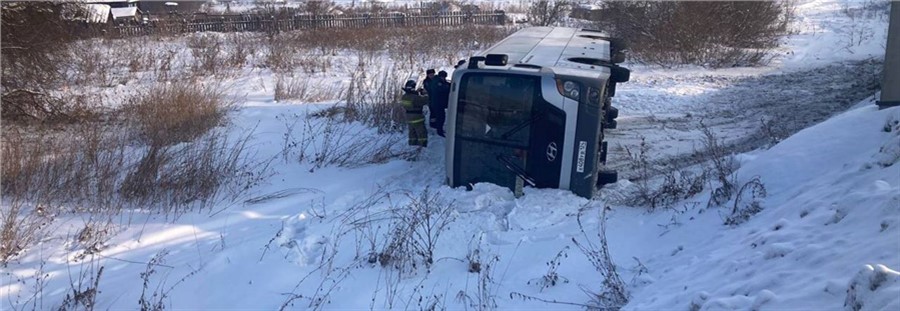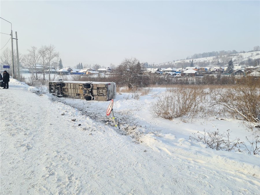 В Красноярском крае автобус с пассажирами слетел с трассы и опрокинулся