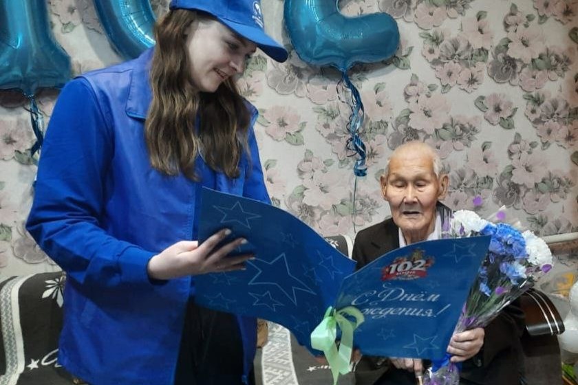 В Тасеевском районе Красноярского края активисты движения «Волонтеры Победы» поздравили с днем рождения ветерана Великой Отечественной войны Афанасия Лапшакова.
