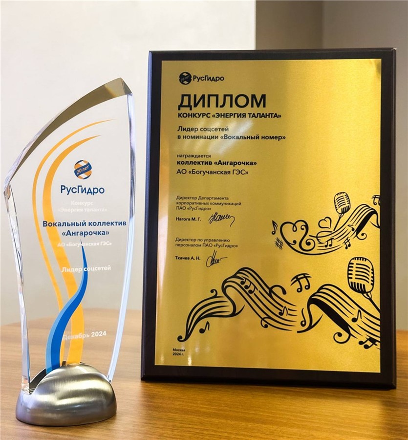 В честь двадцатилетия Группы РусГидро были организованы пять творческих конкурсов, которые проходили с марта по декабрь 2024 года. Композиция коллектива Богучанской ГЭС набрала самое большое количество положительных откликов зрителей на страницах Группы РусГидро в социальных сетях, и получила приз в специальной номинации «Лидер соцсетей». Награду и дипломы участникам коллектива вручил Генеральный директор АО «Богучанская ГЭС» Владислав Кобяков.