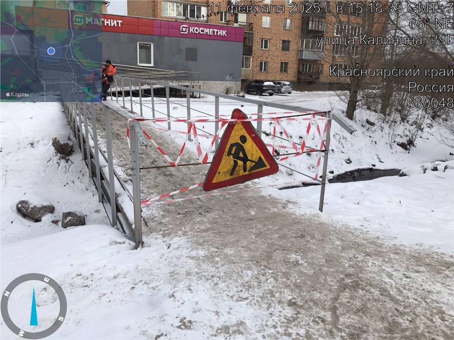 В Красноярске в районе дома № 35а по улице Калинина на пешеходном мостике через реку Бугач начались работы по замене деревянного настила на металлический.