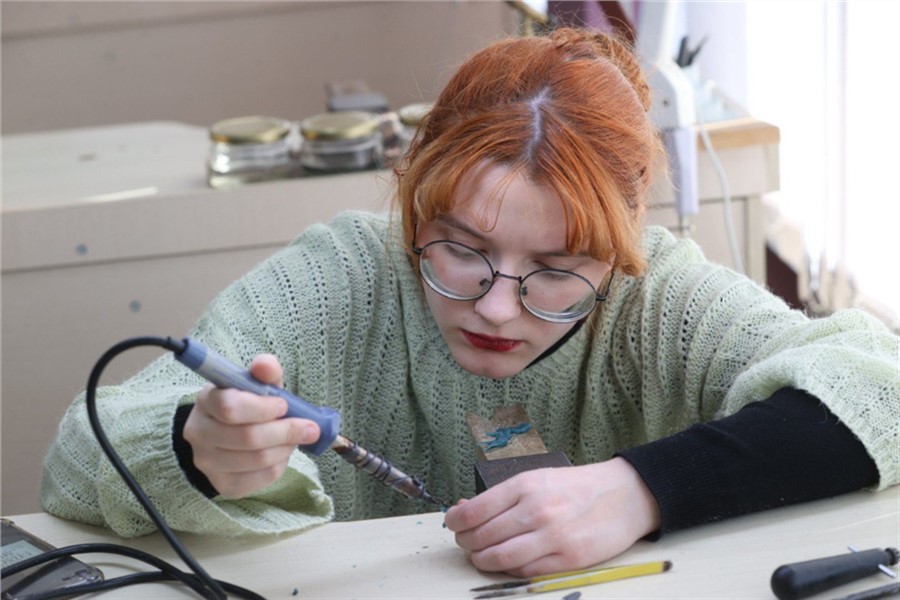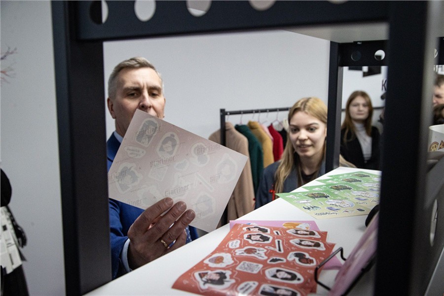 В колледже обучается более 2 тыс. студентов. Они осваивают специальности, связанные с промышленностью, а также креативные направления: ювелир, графический дизайнер, реклама, музыкальное и звукооператорское мастерство, дизайн, техника и искусство фотографии, анимация и анимационное кино, кино- и телепроизводство. Есть в учебном заведении и учебно-производственные мастерские, руководит которыми Алексей Снетков. Гости посмотрели, как проходят занятия, и увидели выставку красноярского художника Александра Краснова.