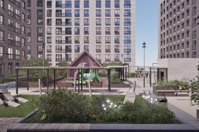 К дому будет прилегать парковка на 148 машино-мест. Вне придомовой территории разместится еще 111 мест. Также на территории ЖК планируют построить четыре детские площадки и две спортивные. Пространство озеленят деревьями и кустарниками.