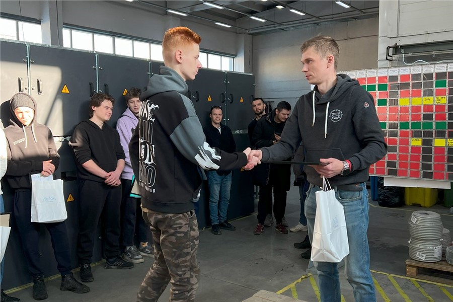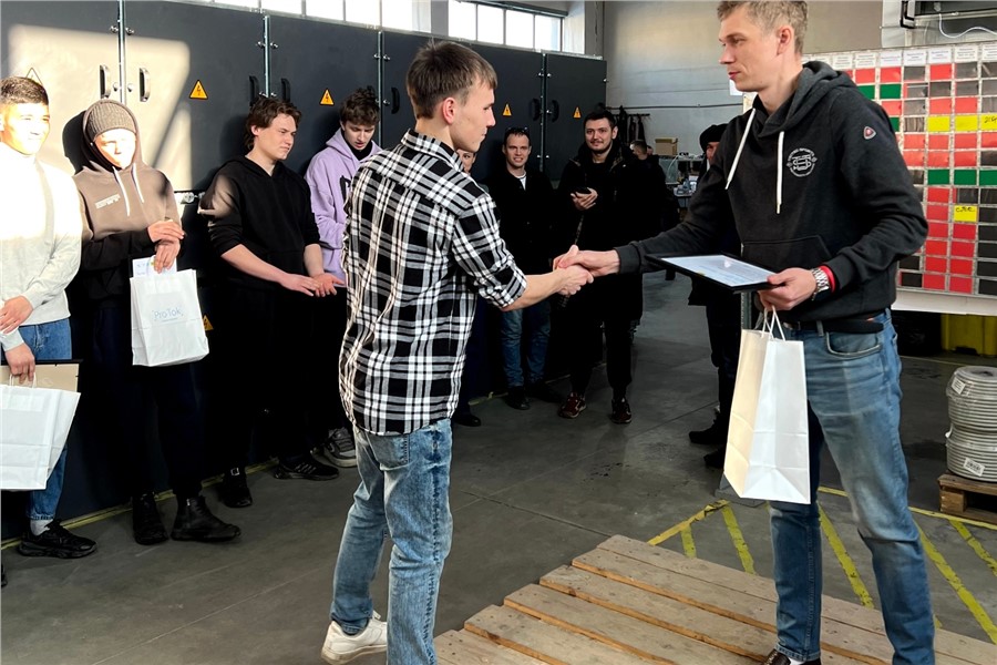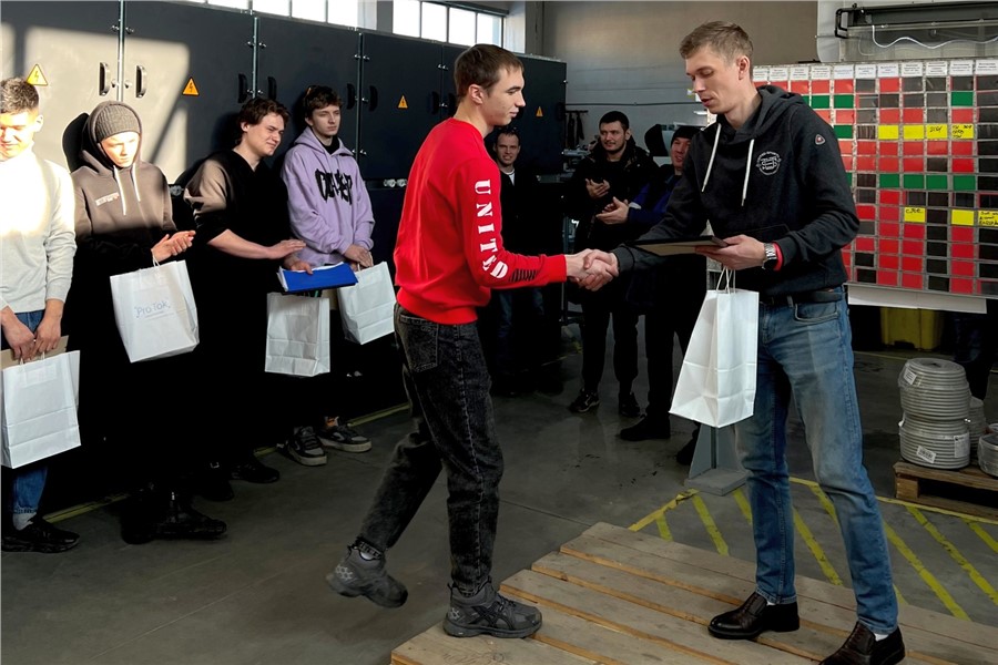На заводе трансформаторных подстанций и высоковольтного оборудования «Про-Ток» вручили благодарности и подарки студентам-практикантам.