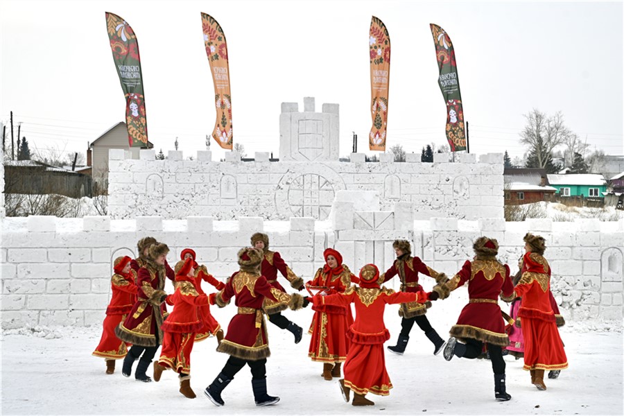 2 марта в селе Сухобузимское Красноярского края по случаю народных масленичных гуляний прошло театрализованное представление взятия снежного городка.