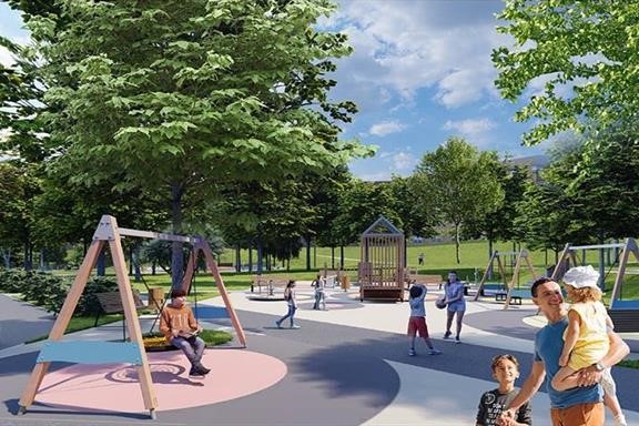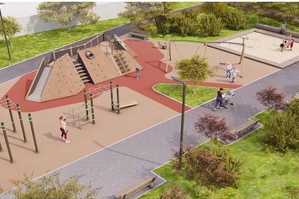 На Борисевича, 4-6 заросший пустырь нужно превратить в современный сквер с дорожками, детскими площадками для разных возрастов. Там появятся качели, перголы, скейт-парк, уличные тренажёры и велодорожки.