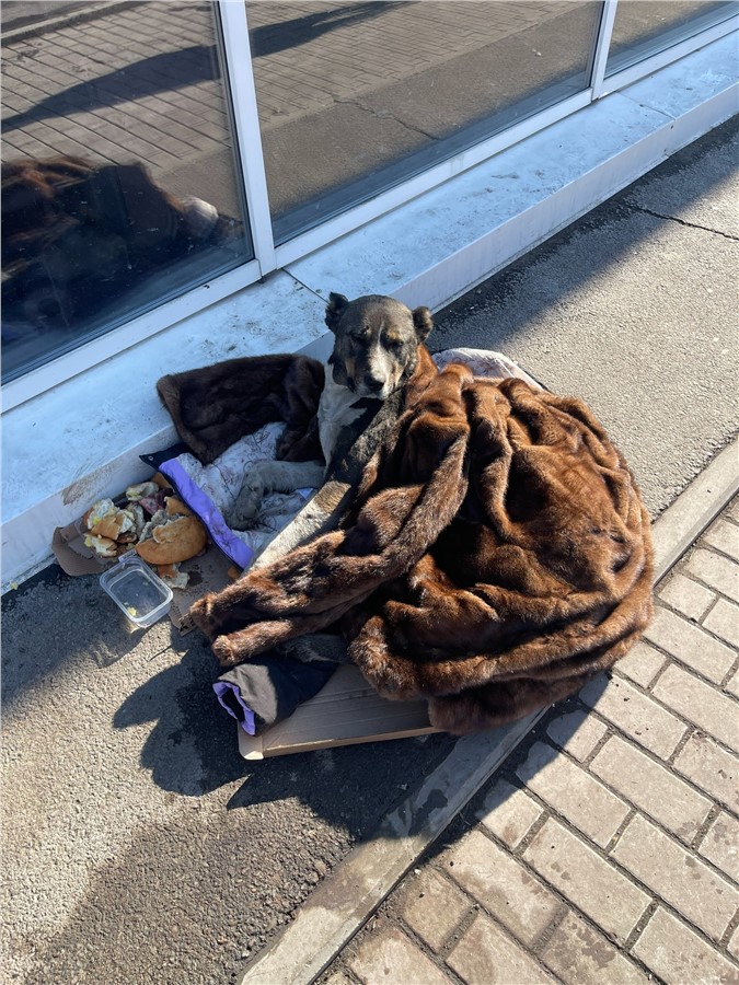 Фото пострадавшего животного появилось в паблике микрорайона в социальной сети «ВКонтакте». На снимке видно, что собака лежит на асфальте, рядом с ней находится еда и пластиковый контейнер. Для того, чтобы псу было комфортно и не холодно под него подложили картонку и что-то похожее на старую куртку. Сверху животное накрыли шубой.