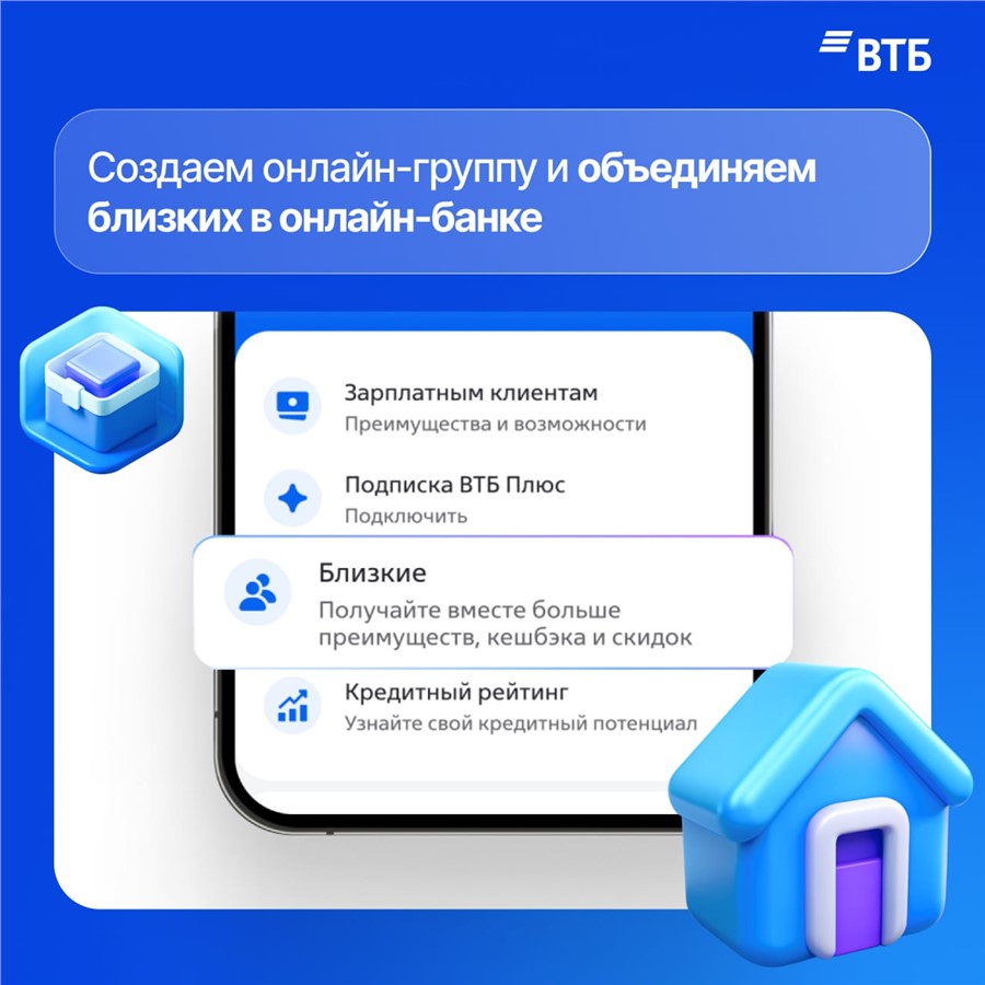 - В приложении «ВТБ Онлайн» создаем группу и рассылаем ссылки-приглашения родным и близким. Новые виртуальные семьи пользуются дополнительным кешбэком в категории «Супермаркеты». Участникам группы доступны и другие интересные предложения — подписка с дополнительными опциями, скидки на страхование и связь, надбавки по накопительному счету.