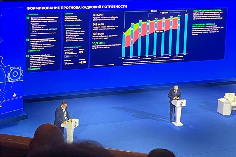 В условиях, когда на бизнес возлагаются большие задачи по достижению целей национального развития, одной из ключевых тем Съезда стало кадровое обеспечение отраслей экономики. С докладом выступил министр труда РФ Антон Котяков.