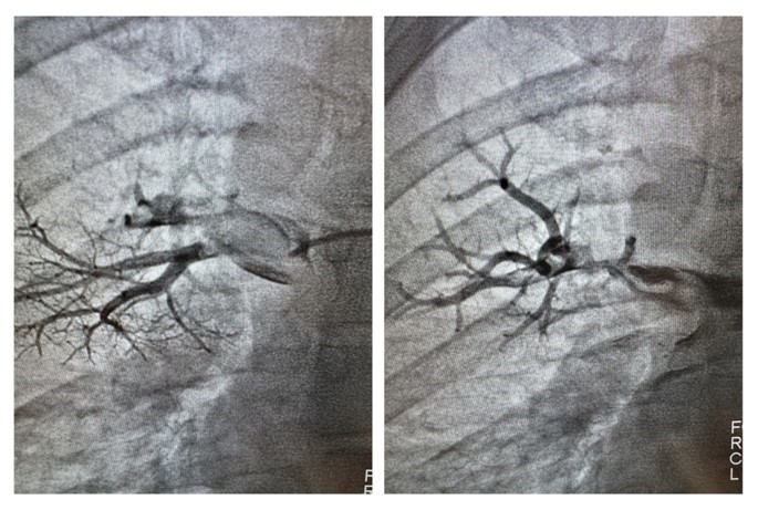 Применяемая в 20-й больнице методика позволяет врачам через один прокол проникнуть в венозную сеть, откуда через сердце добраться до легочной артерии и ее ветви. Тромб разрушается на фрагменты. Это позволяет быстрее его растворить и избежать тяжелых осложнений за счет сокращения времени и снижения количества препарата. Врач наблюдает за процессом с помощью ангиографа. Для этого пациенту в кровь вводят контрастное вещество.