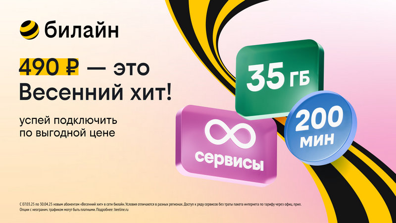 Оператор билайн запустил тариф «Весенний хит» для новых клиентов. Он соединил в себе ключевые аспекты при выборе оператора: наполнение пакета — оптимальное количество минут и интернета, безлимит на популярные сервисы и выгоду.