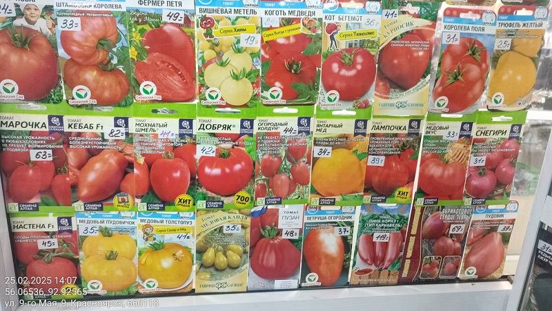 - томат «Минусинский перцевидный розовый», «Мексиканские маракасы», «Обские купола», «Штамбовый крупноплодный», «Берли тай дай хаат», «Жиголо XXL», «Длинный чулок», «Пинк хорн» и другие.