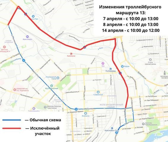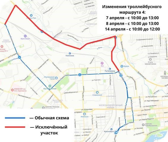 Красноярские троллейбусы 7, 8 и 14 апреля не будут ходить по улице Калинина, сообщили в мэрии.
