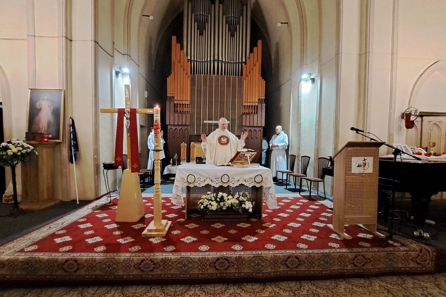 Также торжественная месса прошла в католическом храме Преображения Господня, во время которой зачитали поздравления от губернатора региона и муфтия Красноярского края. Служение завершилось Крестным ходом.