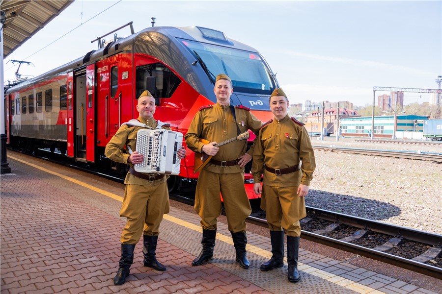 Сегодня, 29 апреля, в электричках Красноярской магистрали состоялась праздничная акция «Музыка Победы».
