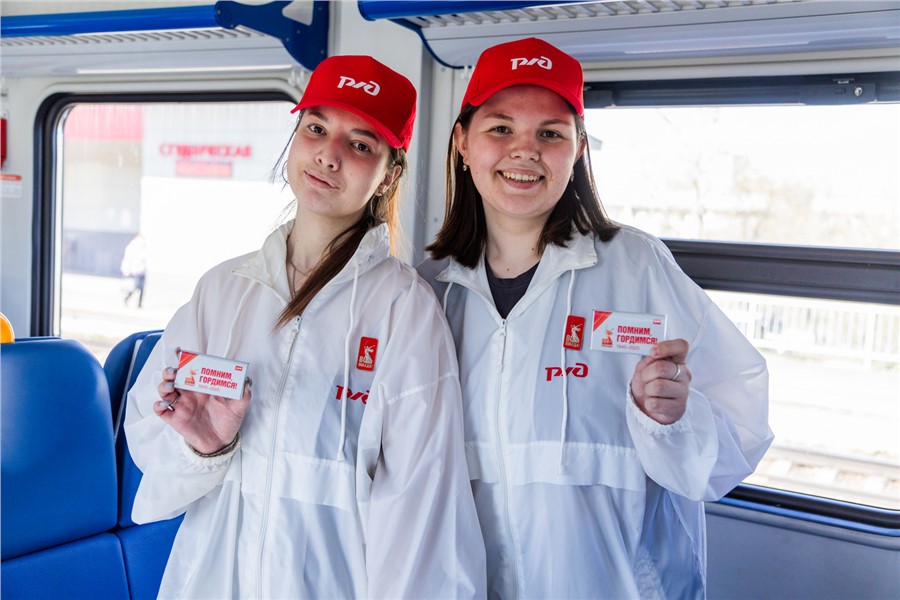 Волонтеры КрасЖД подарили пассажирам памятные сувениры.