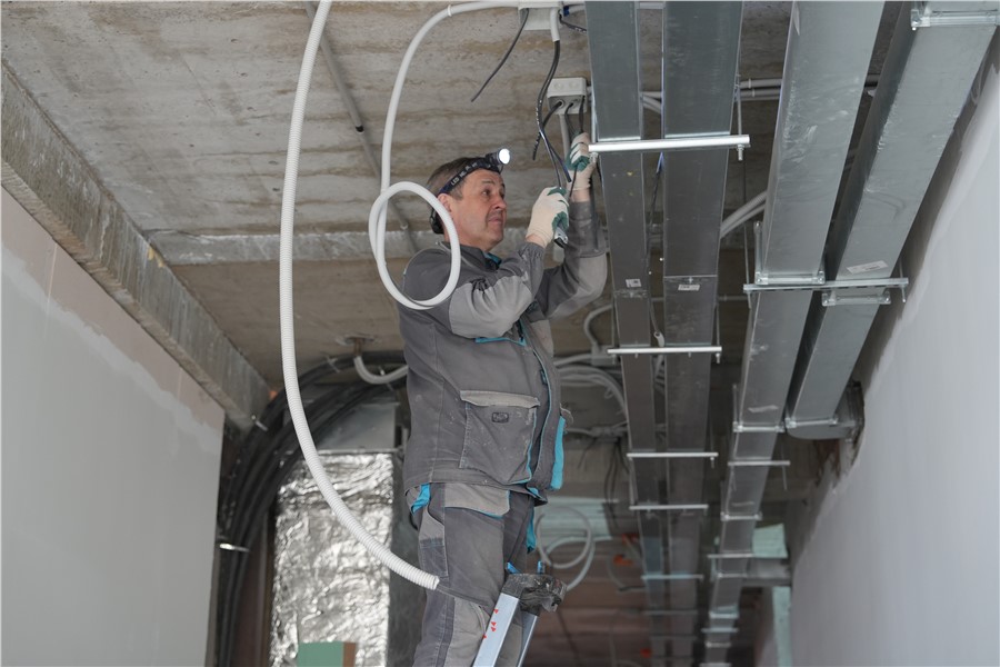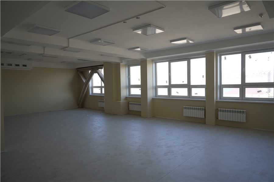 «Блоки с учебными классами находятся в хорошей степени готовности — около 80 %. Там осталась чистовая отделка, монтаж плинтуса, после чего мы готовы передавать помещения под размещение оборудования. Здание отличается большим количеством витражного стекла. На четвертом этаже все холлы стеклянные», — сообщил представитель подрядчика Сергей Ефременко.