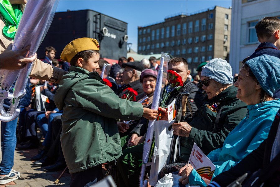 Всех собравшихся, в том числе самых почетных гостей праздника — ветеранов и тружеников тыла — с наступающим Днем Победы поздравил начальник Красноярской железной дороги Алексей Туманин: